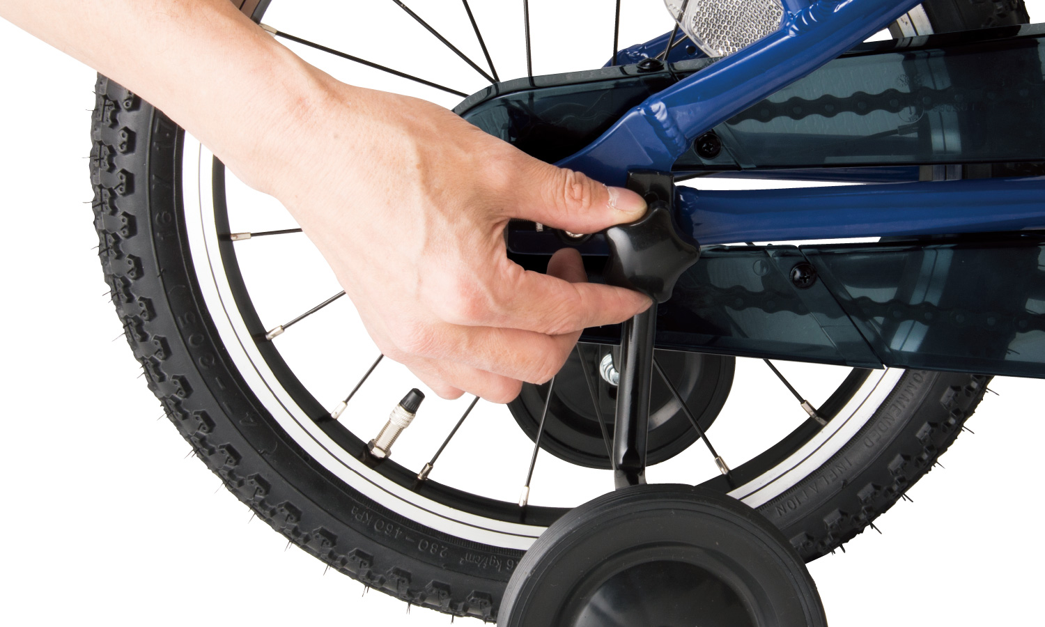 アルミフレームと軽量パーツを使用し7.20kg(ペダル・キックスタンド・補助輪付き)という、子どもが扱いやすい重量を実現したモデルです。足つき性を重視した形状のフレームや握りやすい細めのグリップなど、初めて自転車に乗る子どものための機能を備えています。キックバイクからすぐに乗れるサイズです。3~5歳用。